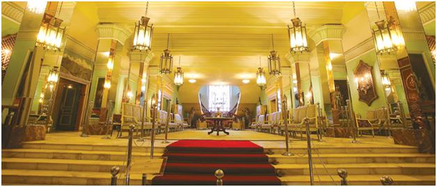 The road wrapped around the field and eventually turned towards the main entrance of the palace. Statues of fish, peacocks, and elephants lined the staircase that led up to a massive ornate door. The roof above it had pointed corners that extended up to a single point in the middle, complete with a small statue in typical Nepali fashion. Most of the surfaces were gilded and mirrored, with etched depictions of various Hindu deities. Whatever surfaces weren’t decorated with metal and glass were dark wood, carved in complex traditional designs. At the door, a man stamped my ticket and waved me into the glamorous room.