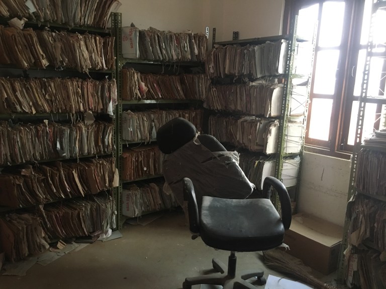 The three of us plus our contact at the office went into the next building to make the changes to the office ledgers. Because the office was crowded the first time I came, I wasn’t able to walk around. But there was no one to stop me this time. And lemme tell ya, the yatayat office is disgusting. Each step brings a puff of dust, and any unused room is decrepit and rotting, the floor covered in pigeon shit.