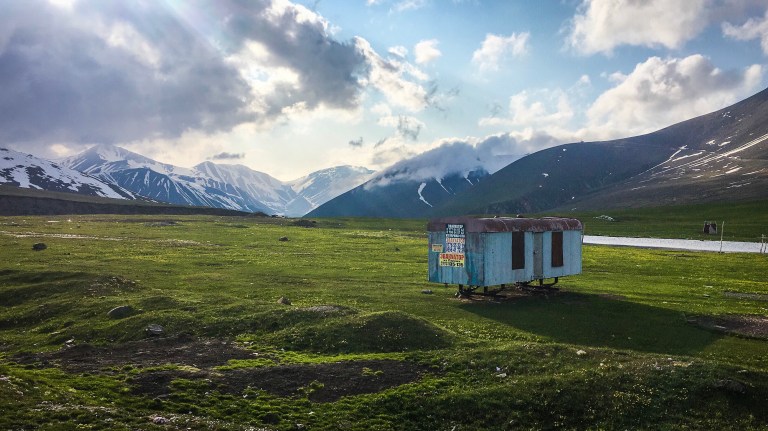 Almost immediately, an older Kyrgyz couple on their way to Bishkek stopped for us. They weren’t going all the way, as we found out, but another two hours down the road was as good as we were going to get.