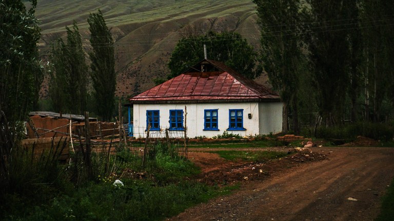 The drivers took us into the village, to their own home. Our bags were left in the car and we were taken to show beds. At no point were we asked or checked with, so I feel like it technically qualifies as a kidnapping, albeit a quite benevolent one. We were given beds and food and tea, and spent the afternoon and evening with a Kyrgyz family without a word of English spoken. For some time, I left to take photos of the village while my friend was trapped entertaining the 4-year-old who lived there as well.