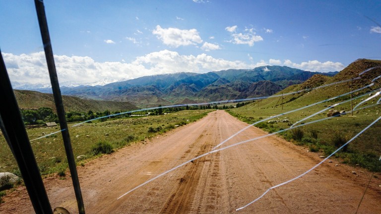 When we arrived in Suusamyr, we sat down by the road and knew the long waits would begin now. I don’t know how long we sat there, but it must have been at least an hour. We decided we were making no progress; every car on the street was stopping in Suusamyr. Instead, we hiked down the road a couple kilometers until we were outside the town. Another hour passed, until a shaky old military truck hobbled by. The guy inside, an ecologist in the valley, gave us a ride to the next town where his parents lived.