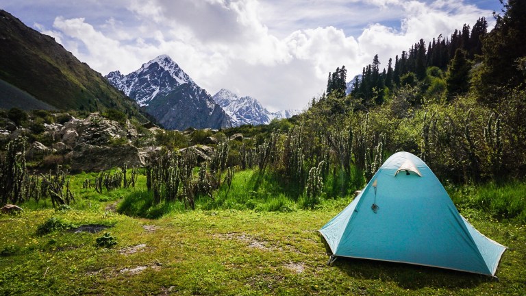 But the moment I made it through, I was in a big alpine meadow. This was the place to set up my tent. It took only 7 miles and a few hours, but I was exhausted when I arrived. I set to work setting up my tent right away so I could relax, but the ground was far too wet. Instead I spent the next several hours trying to hand-dry the floor of my tent while also trying to figure out a way to sleep without drenching my sleeping bag. This is when a sleeping pad would have come in handy. But I didn’t have one, and had to tolerate another cold, wet night in Kyrgyzstan.