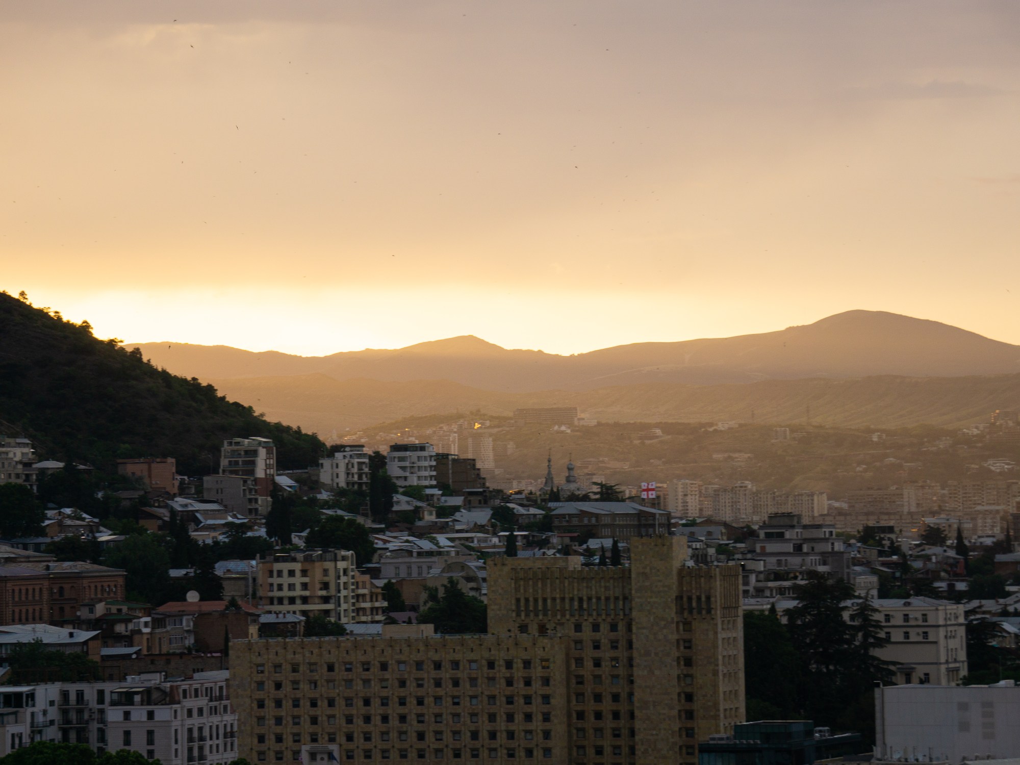 We stayed awhile on top of the hill. The city is laid out in such a way that the major buildings catch the light of the setting sun and shine out, which made the view all the more fiery. As it sank lower, the Trialeti Mountains, an arm of the Greater Caucasus that runs west of Tbilsi, cast long shadows across the valley.