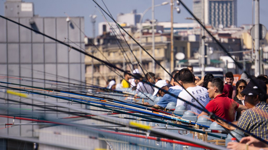 Any given bridge leading into Karaköy is lined with men, women, and children, fishing shoulder-to-shoulder. Below the bridges are underground markets and docks lined with boats.